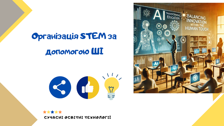 Організація STEM-освіти за допомогою штучного інтелекту (ШІ) сьогодні є важливою і перспективною тенденцією, що дозволяє персоналізувати навчання, підтримувати науково-дослідний підхід, розвивати творчість і критичне мислення учнів. ШІ використовується у створенні адаптивних навчальних програм, розробці планів-конспектів занять, створенні STEM-орієнтованих проєктів, віртуальних лабораторій, аналізі освітніх даних та автоматизації оцінювання, що сприяє більш ефективному викладанню та навчанню в межах STEM.