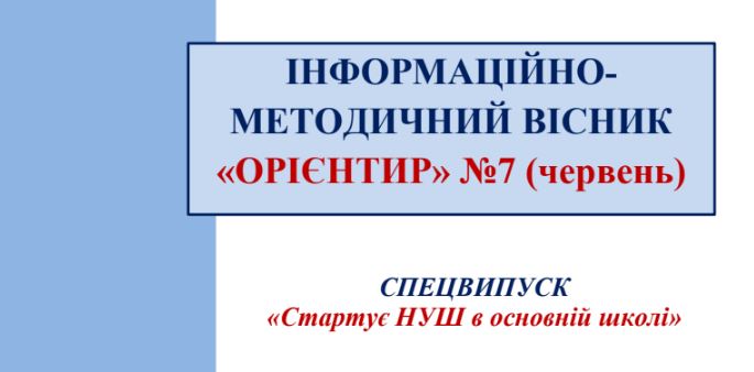 Пропонуємо до вашої уваги СПЕЦВИПУСК ІНФОРМАЦІЙНО-МЕТОДИЧНОГО ВІСНИКА науково-методичного центру «ОРІЄНТИР» за темою «Стартує НУШ в основній школі».