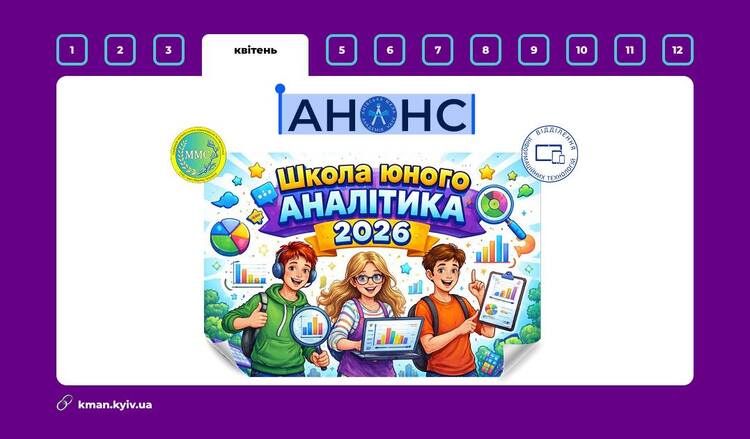 Відділення «Інформаційні технології» Київської Малої академії наук спільно з Кафедра математичного моделювання та статистики КНЕУ ім. Вадима Гетьмана  оголошують про початок реєстрації на освітній проєкт «ШКОЛА ЮНОГО АНАЛІТИКА – 2026».
