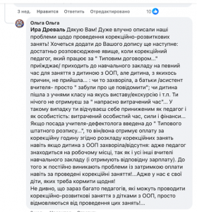 Також висловлювання та коментарі показують, що подібні додаткові умови, як-от підпис батьків, який має підтверджувати факт проведення заняття, більшість педагогів сприйняли як претензію у свій бік. І зауважили, що у деяких випадках отримати такий підпис буде складно, якщо не неможливо. До прикладу, якщо батьки не часто навідуються до школи і “спіймати” їх для підпису - ще той квест. Або вони мають конфлікти з навчальним закладом чи спеціалістом і можуть таким чином “мститися”, хоча заняття фактично проводитимуться. Це може змусити фахівців, яких і без цього небагато, відмовитися від цієї діяльності, віддаючи перевагу приватній практиці.