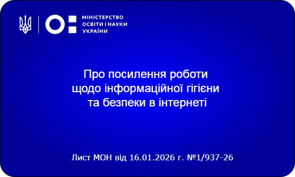 Лист МОН від 16.01.2026 г. №1/937-26 "Про посилення роботи щодо інформаційної гігієни та безпеки в інтернеті"