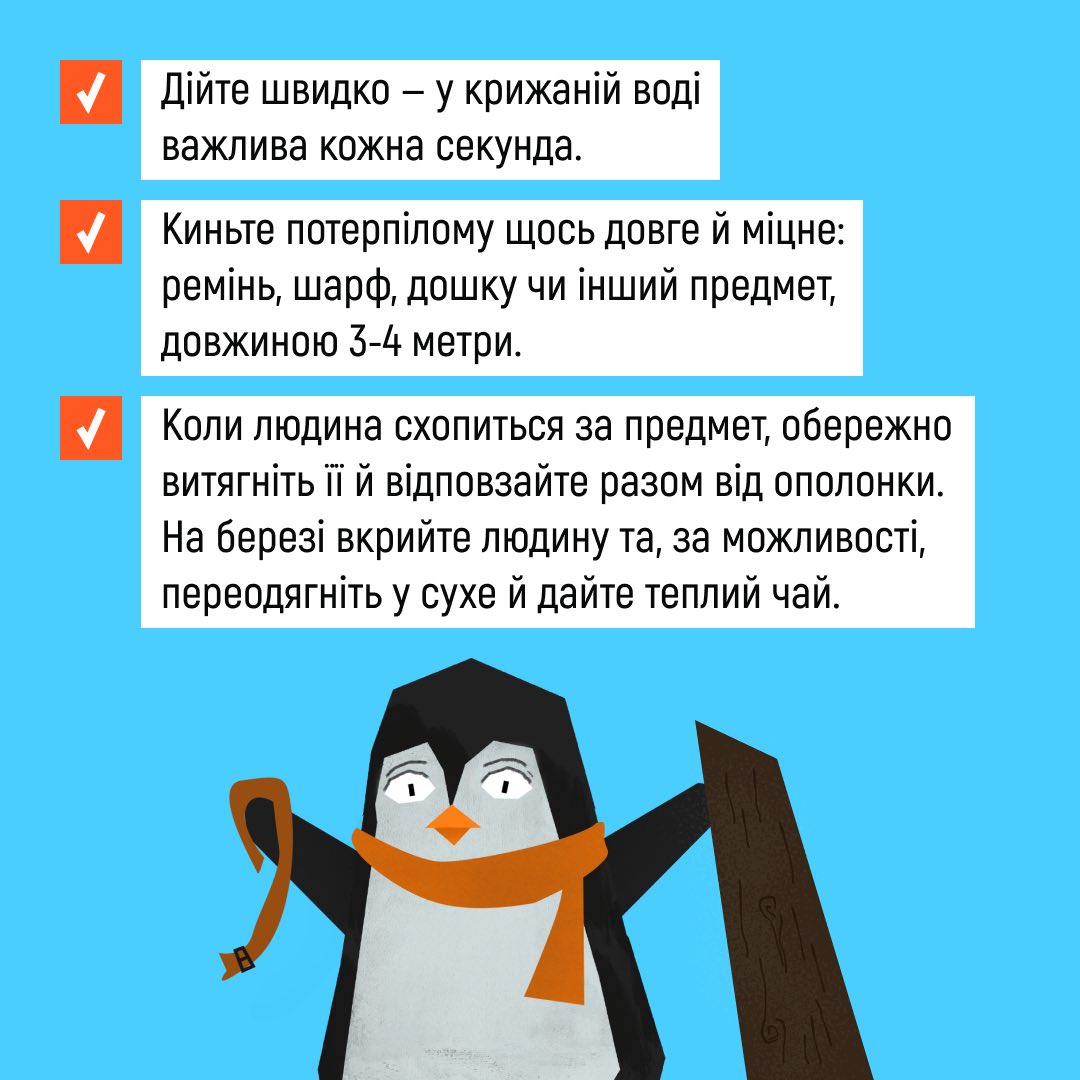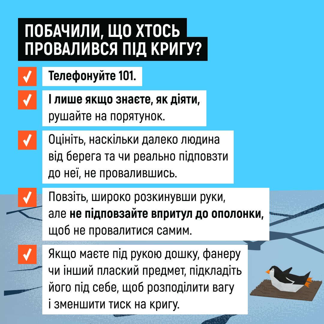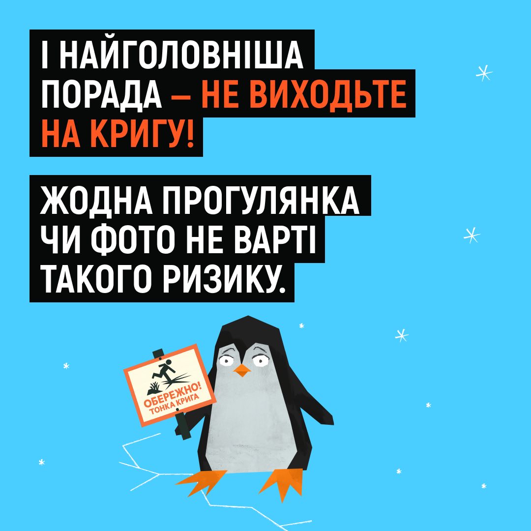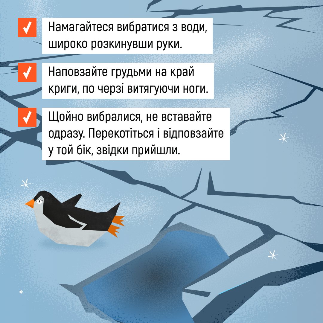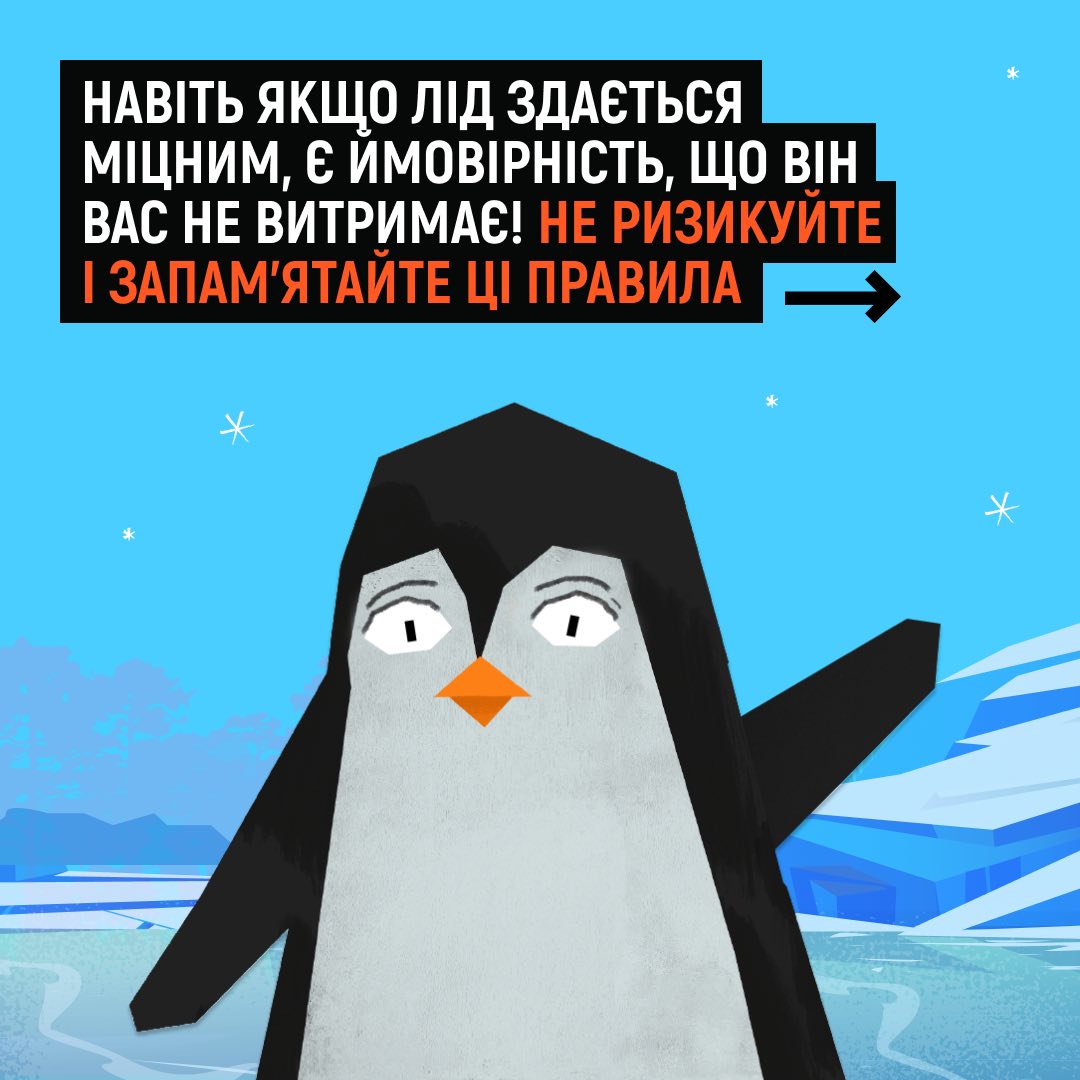 Не випробовуйте міцність льоду — краще оминути небезпеку, ніж опинитися у крижаній воді 🐧
