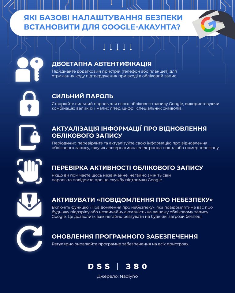 Існують базові налаштування для Google-акаунта, які зменшують ймовірність викрадення самого акаунта, а також надають значно більше шансів на відновлення доступу після зламу облікового запису.