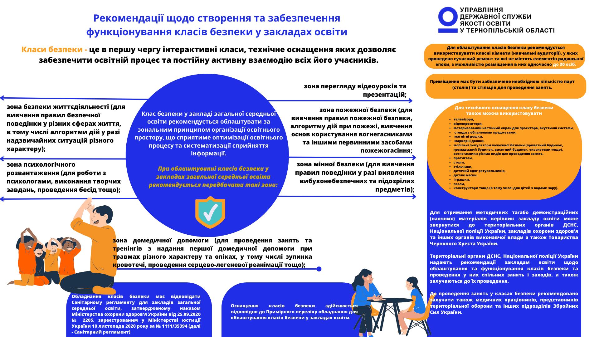 З метою створення умов для формування в учнів здоров'язбережувальних компетентностей, знань правил пожежної, мінної безпеки та цивільного захисту, алгоритму дій у разі виникнення надзвичайних ситуацій, надання домедичної допомоги керівникам закладів освіти потрібно використовувати "Рекомендації щодо створення та забезпечення функціонування класів безпеки у закладах освіти" (Наказ МОН № 135 від 10.02.2023 року) 👉https://mon.gov.ua/.../deyaki-pitannya-stvorennya-ta...