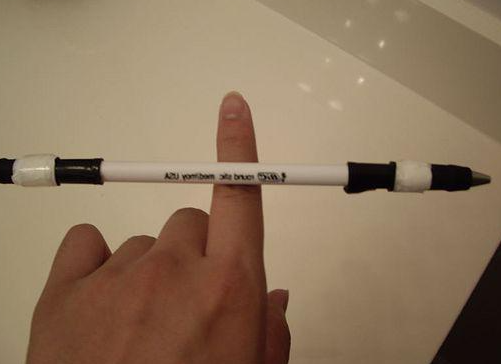 Тому можна запропонувати їм покласти ручку (для письма) на два пальці однієї руки, розставивши їх, аби був баланс. Далі – підняти ручку на пальцях угору й порухати вліво-вправо чи вгору-вниз. Далі – з’єднати обидва пальці, продовжуючи рухати ручку, а насамкінець прибрати один палець, втримуючи ручку лише на одному пальці.