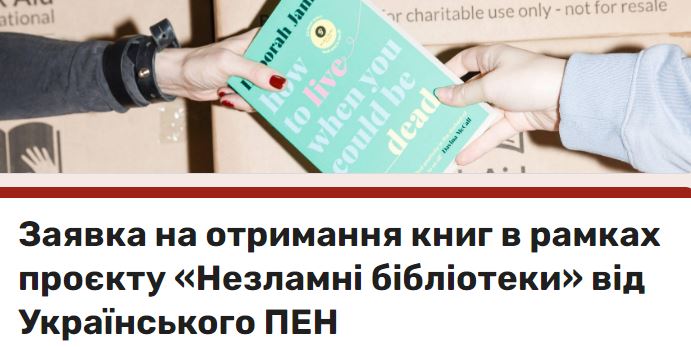 Гарні новини для бібліотек і не лише! Є можливість безкоштовно поповнити свої фонди книгами в межах безстрокової ініціативи «Незламні бібліотеки» від PEN Ukraine.