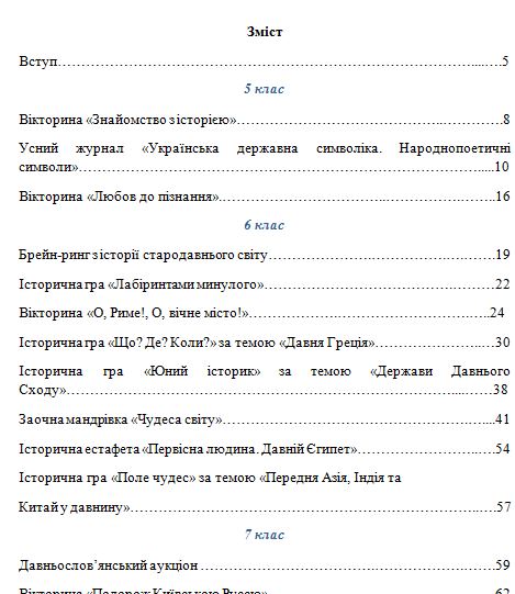 У пропонованому посібнику наводяться різноманітні методичні матеріали, які можуть бути використані вчителем історії. Більшість запропонованих заходів подані у вигляді ігор.