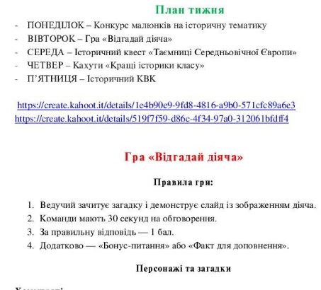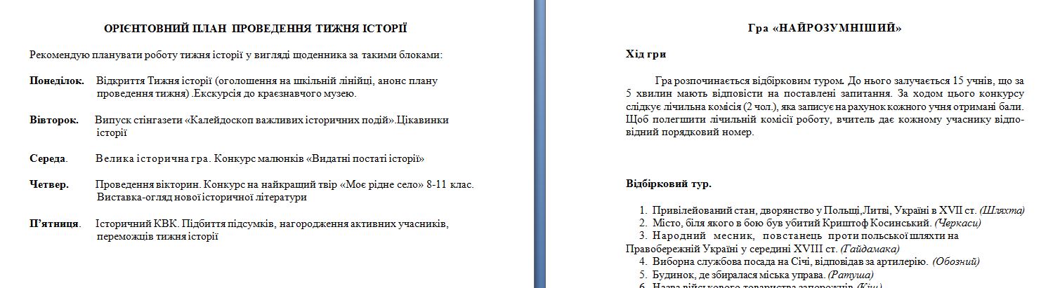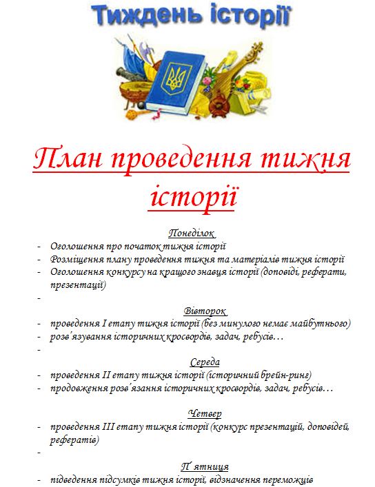 ✔ Матеріали до проведення тематичного тижня історії (завантажити)