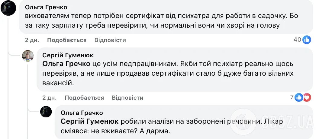 "Вихователям тепер потрібен сертифікат від психіатра для роботи в садочку. Бо за таку зарплату треба перевірити, чи нормальні вони чи хворі на голову".