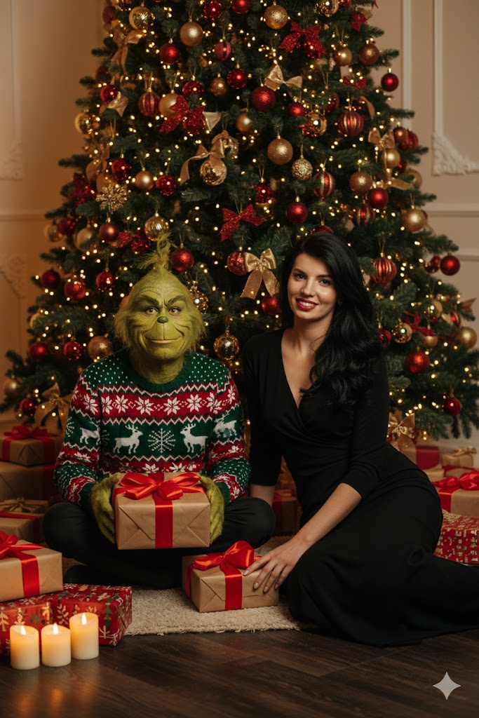 Промпт 1: З Грінчем біля ялинки 💚🎄