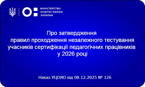 Наказ УЦОЯО від 08.12.2025 № 126 «Про затвердження правил проходження незалежного тестування учасників сертифікації педагогічних працівників у 2026 році»