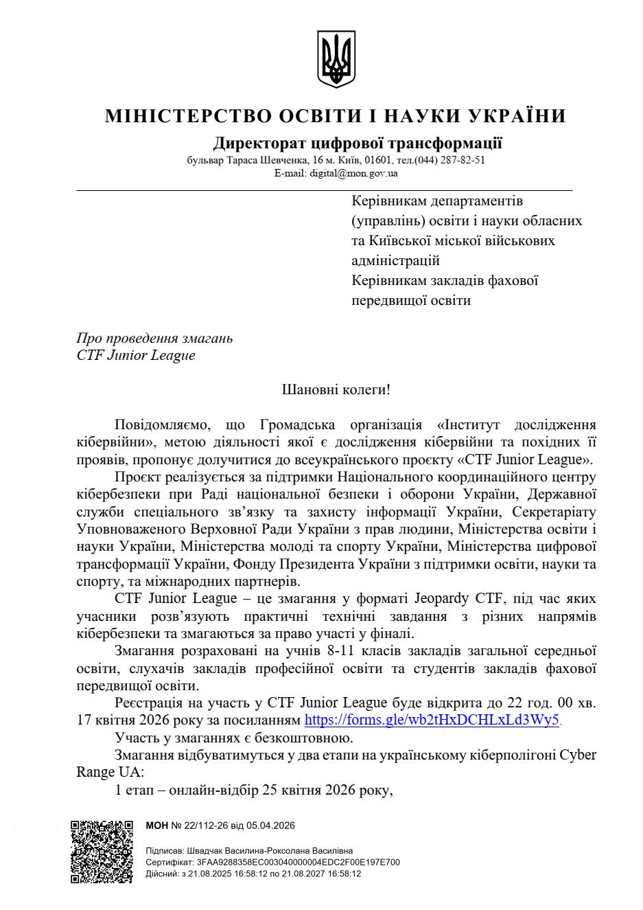 Офіційний сайт: ctfjunior.com.ua.