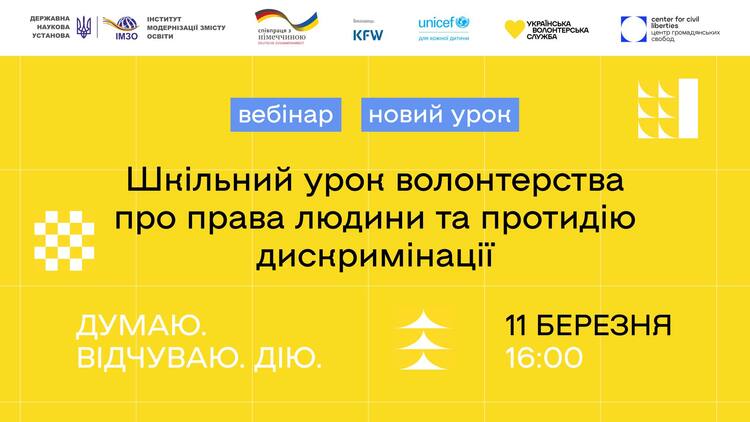 Під час вебінару відбудеться презентація проєкту «Шкільний урок волонтерства про права людини та протидії дискримінації».