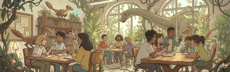 «Уяви, що період, де існують динозаври, триває на Землі досі. І поясни, як існування динозаврів у сучасному світі вплинуло б на твоє життя, яку вони могли б принести шкоду або користь». Учні розвивають мовленнєву компетентність, письмову, наукове мислення, креативність.