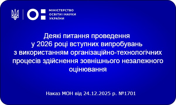 Міністерство освіти і науки України визначило особливості проведення вступних випробувань у 2026 році. Згідно з оприлюдненим наказом № 1701, тестування для вступу на бакалаврат, магістратуру та в аспірантуру проходитиме у форматі комп’ютерного оцінювання.