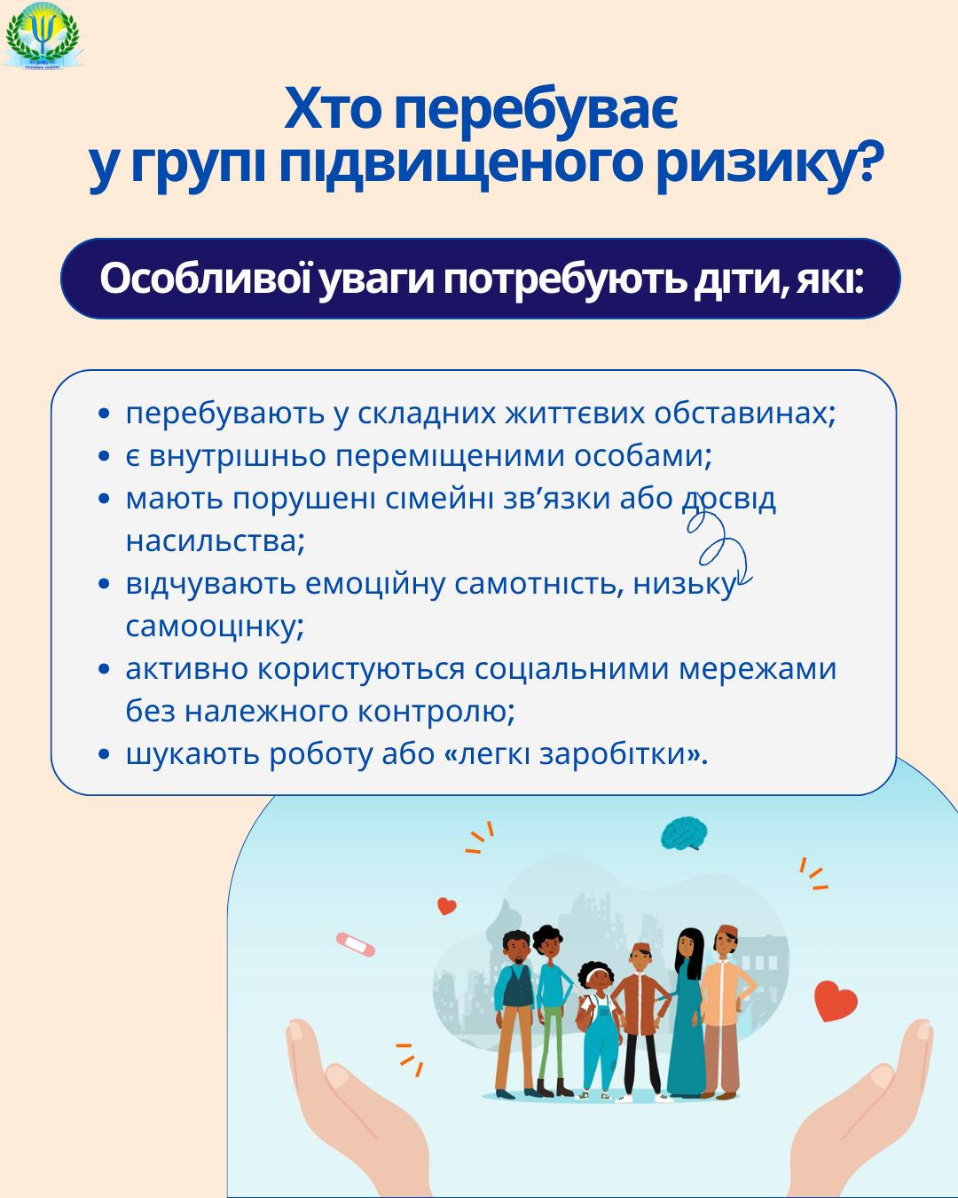 • має доступ до дорослих, які можуть вчасно помітити ризики.