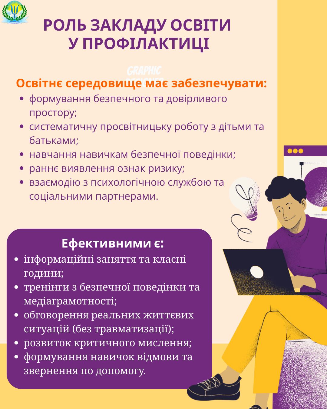 ❇️ Заклади освіти є важливим простором профілактики, де можливе системне інформування, формування навичок безпечної поведінки та організація взаємодії педагогів, психологів і батьків з метою захисту дитини.