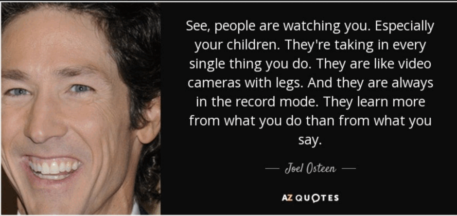 Бачите, люди спостерігають за вами. Особливо ваші діти. Вони вбирають у себе кожну вашу дію. Вони наче відеокамери на двох ногах. І вони завжди у режимі запису. Вони вчаться більше з того, що ви робите, ніж з того, що ви говорите.